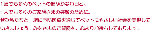 ぜひ私たちと一緒に予防医療を通じてペットにやさしい社会を実現していきましょう。